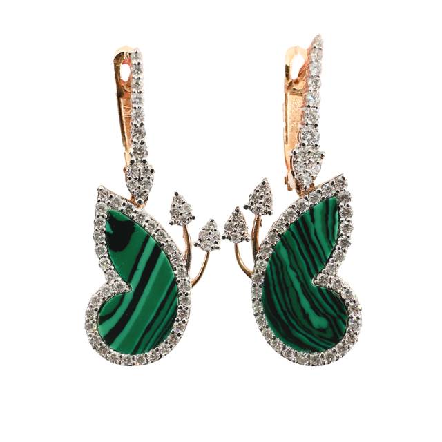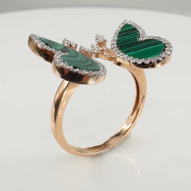 Кольцо из красного золота с бриллиантами и малахитом (054637)