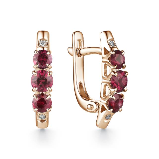Серьги из красного золота с бриллиантами и рубинами (042071)