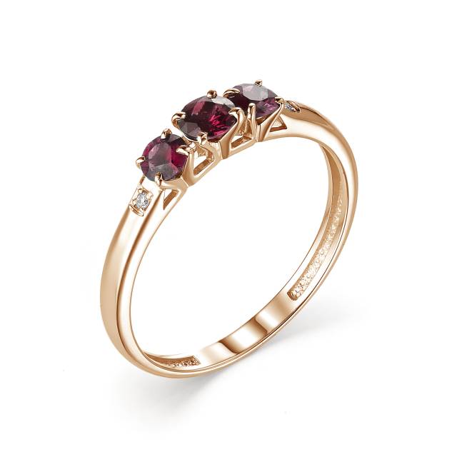 Кольцо из красного золота с бриллиантами и рубинами (049967)