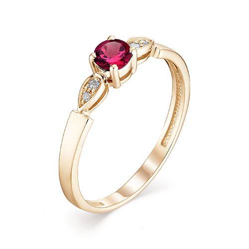 Кольцо из красного золота с бриллиантами и рубином (033373)