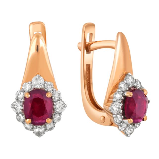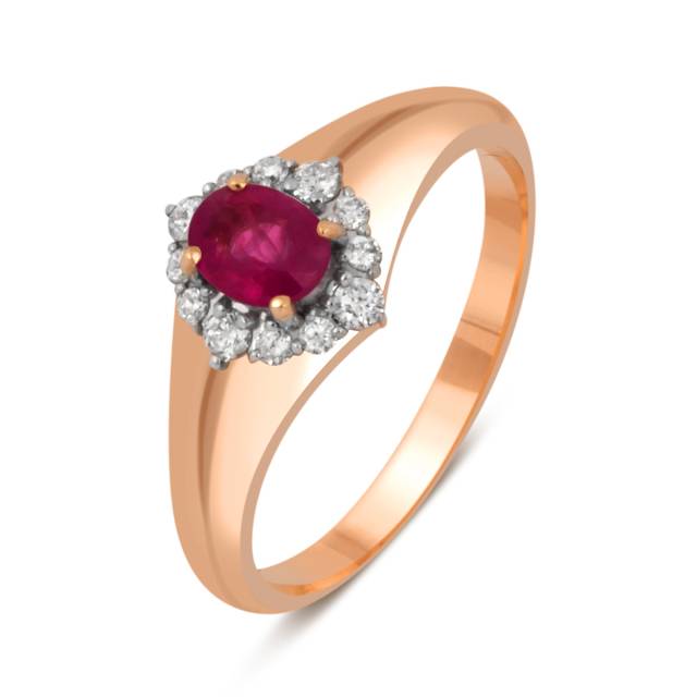 Кольцо из красного золота с бриллиантами и рубином (036185)