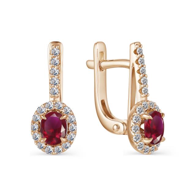 Серьги из красного золота с бриллиантами и рубинами (042080)