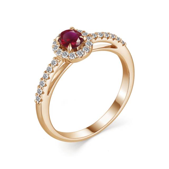 Кольцо из красного золота с бриллиантами и рубином (042025)