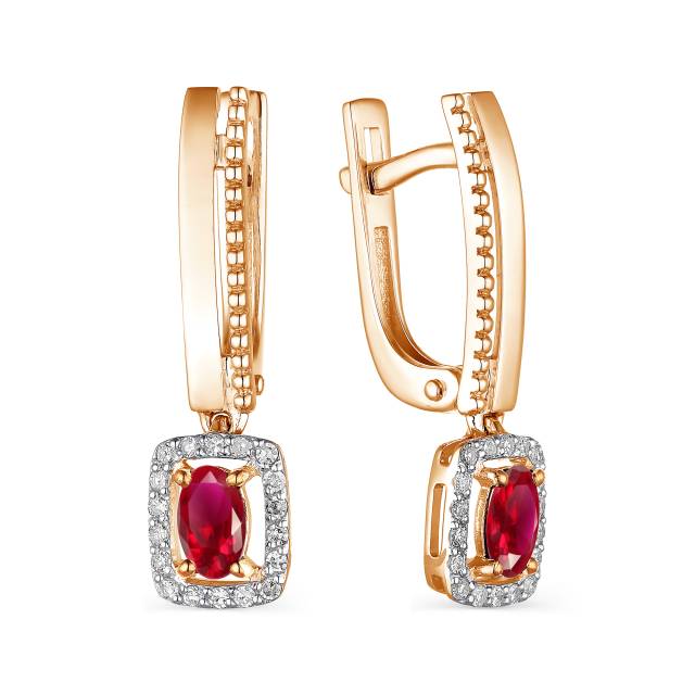 Кольцо из красного золота с бриллиантами и рубином (043082)