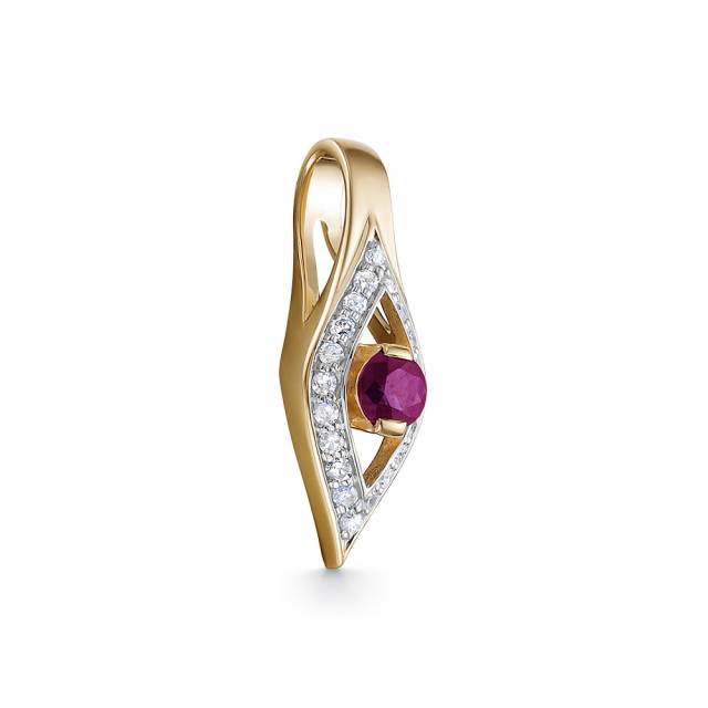 Кольцо из красного золота с бриллиантами и рубином (052855)