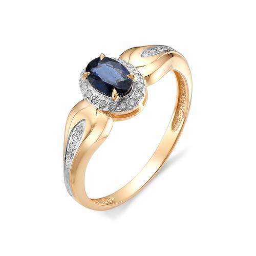 Кольцо из красного золота с бриллиантами и сапфиром (034734)