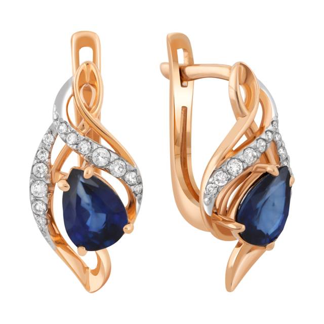 Кольцо из красного золота с бриллиантами и сапфиром (036178)