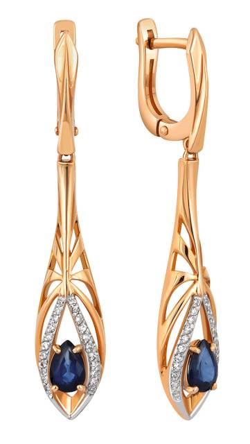 Кольцо из красного золота с бриллиантами и сапфиром (039547)