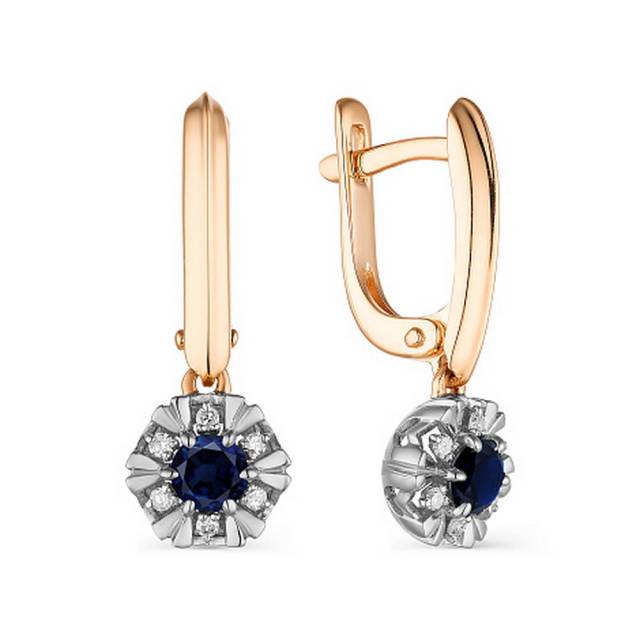 Кольцо из красного золота с бриллиантами и сапфиром (042048)