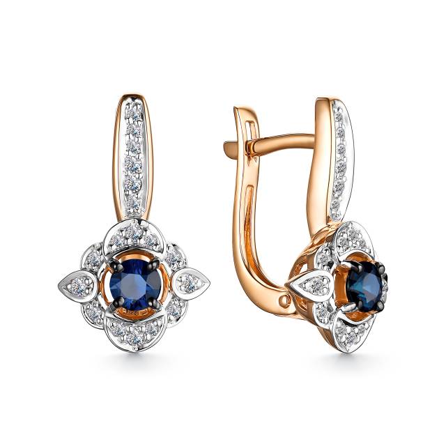 Кольцо из красного золота с бриллиантами и сапфиром (048322)