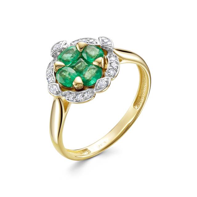 Кольцо из жёлтого золота с бриллиантами и изумрудами (055253)