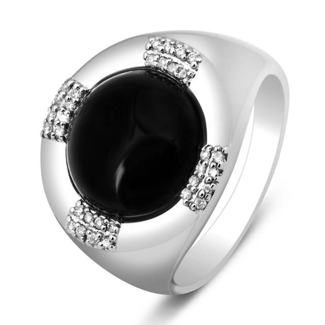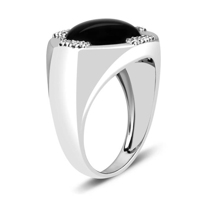 Кольцо мужское из белого золота с бриллиантами и ониксом (018550)