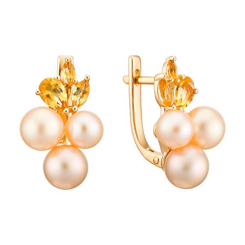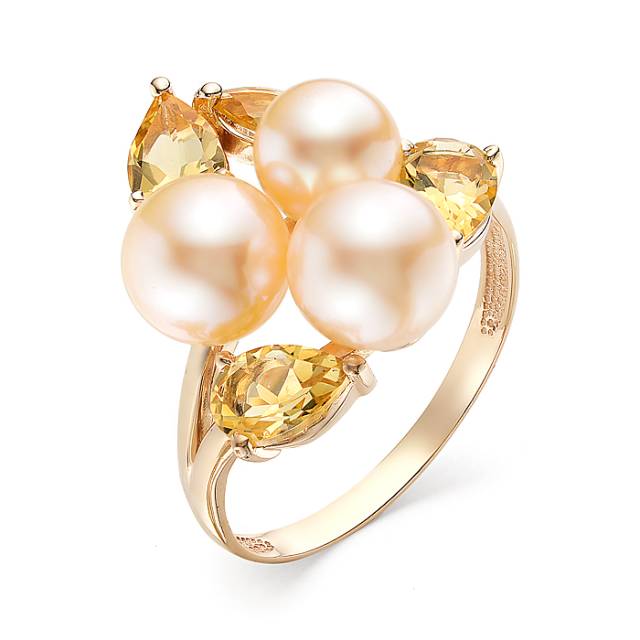 Кольцо из красного золота с цитринами и жемчугом (041516)