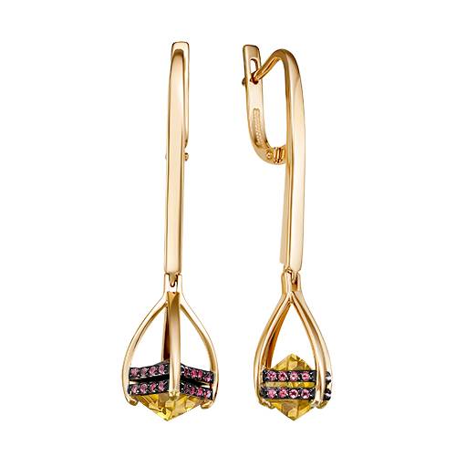 Кольцо из красного золота с цитрином и фианитами (041225)