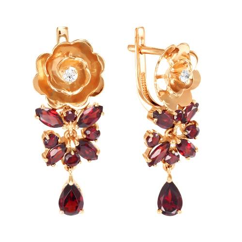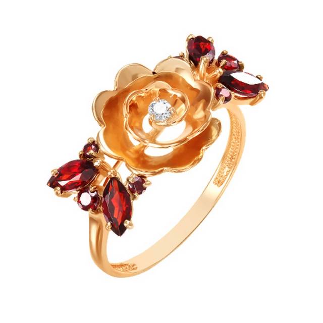 Кольцо из красного золота с гранатами и фианитом (040054)