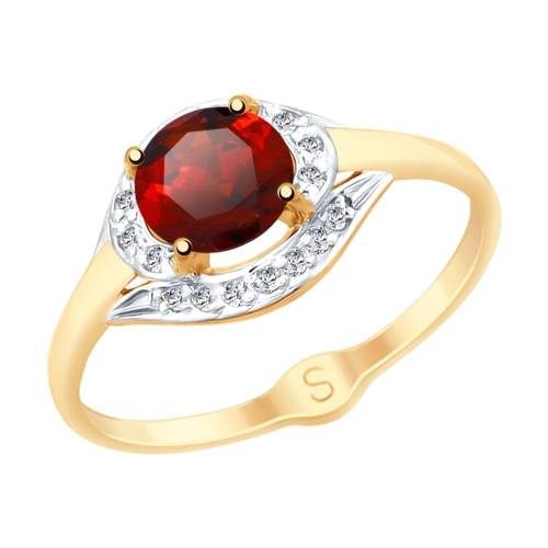 Кольцо из красного золота с гранатом и фианитами (038329)
