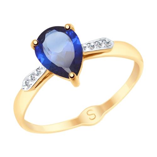 Кольцо из красного золота с синтетическим сапфиром и фианитами (038336)