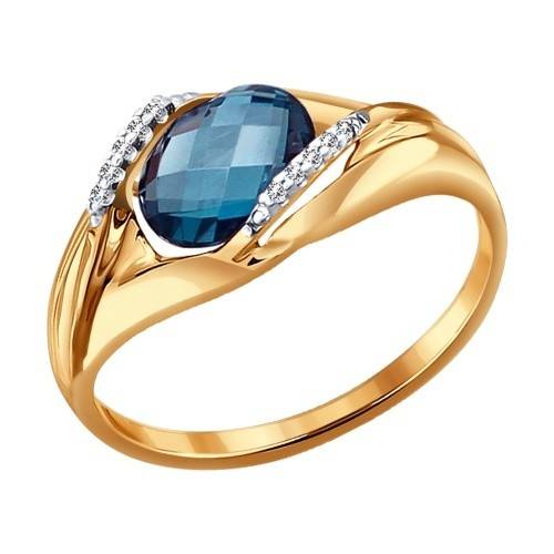Кольцо из красного золота с топазом и фианитами (027856)