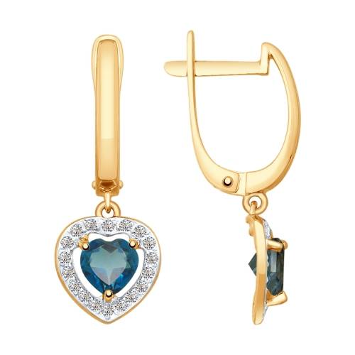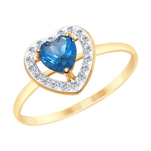 Кольцо из красного золота с топазом "Сердце" и фианитами (038337)