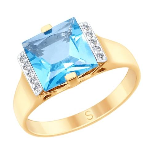 Кольцо из красного золота с топазом "Swiss" и фианитами (038333)