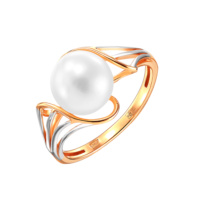 Кольцо из красного золота с жемчугом (041628)