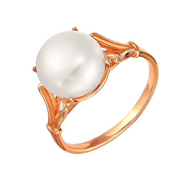Кольцо из красного золота с жемчугом (041642)