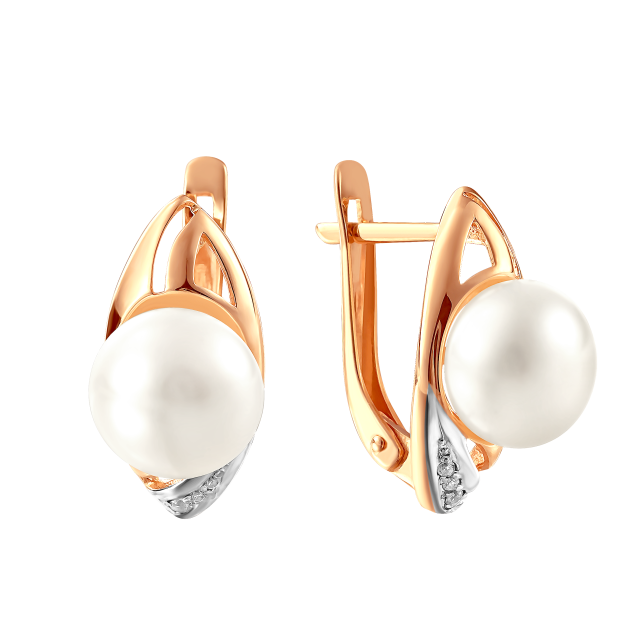 Кольцо из красного золота с жемчугом и фианитами (041819)