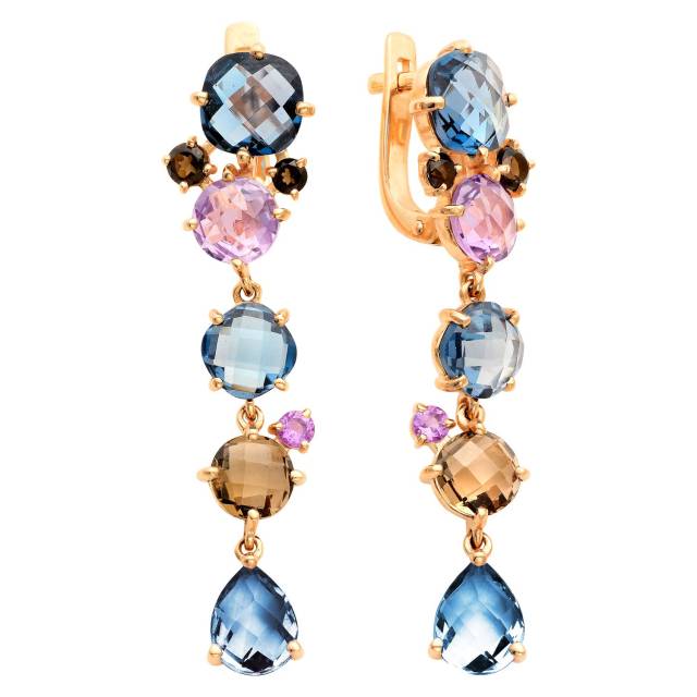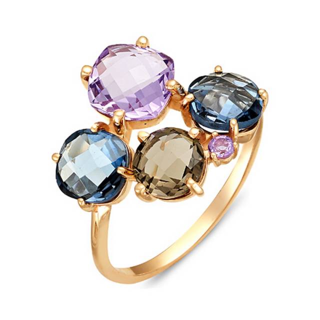 Кольцо из красного золота топазами, аметистами и раухтопазом (041526)
