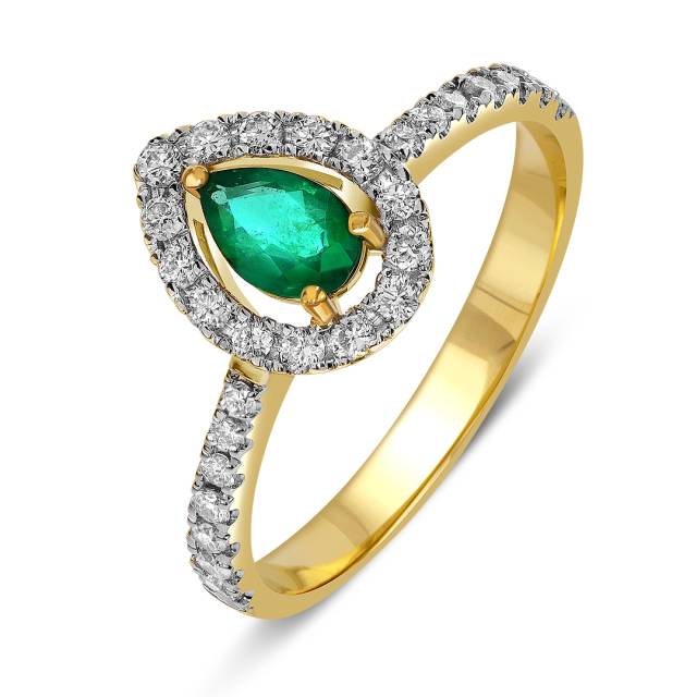 Кольцо из ж`лтого золота с бриллиантами и изумрудом (061669)
