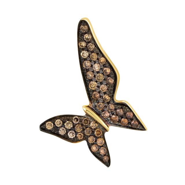Кулон из жёлтого золота с коричневыми бриллиантами "Бабочка" (046466)