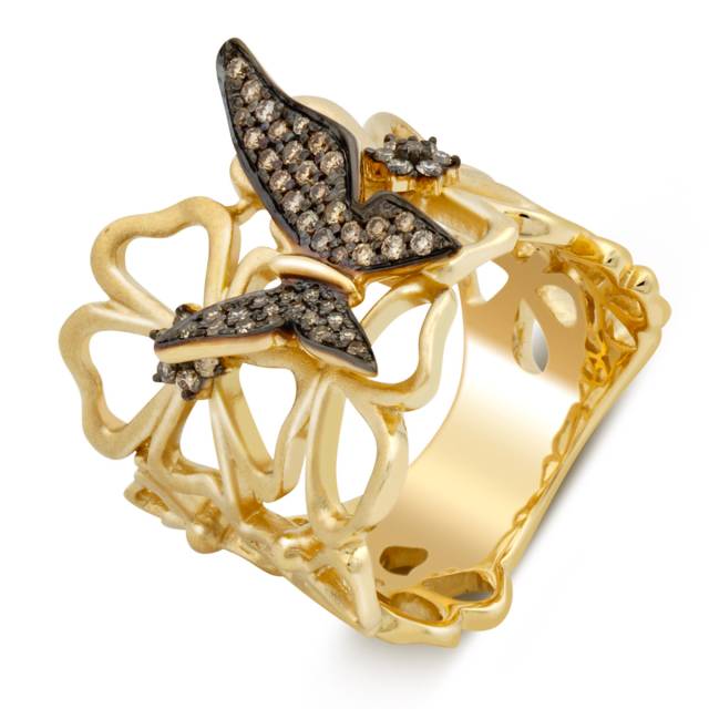 Кольцо из жёлтого золота с фианитами "Бабочки" (057842)