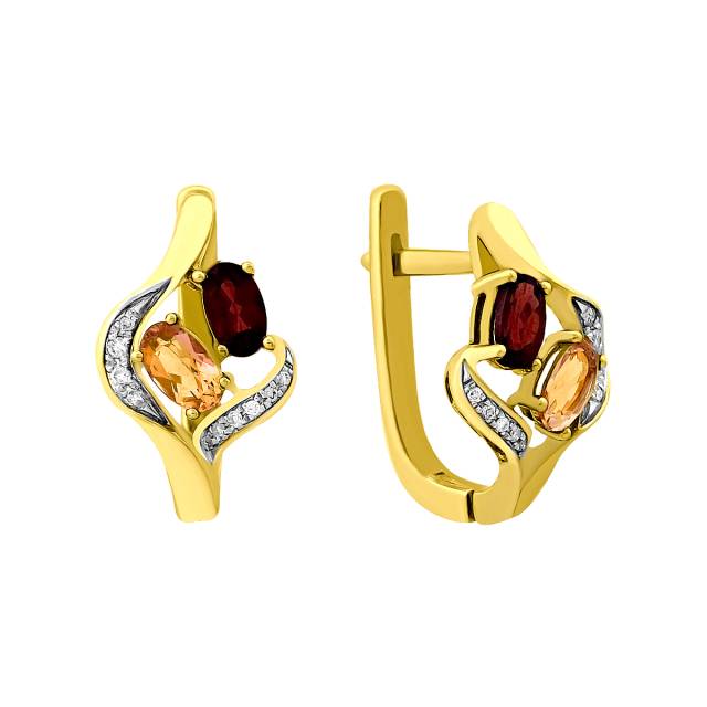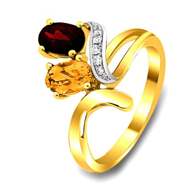 Кольцо из жёлтого золота с бриллиантами, гранатом и цитрином (019315)