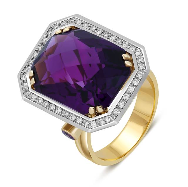 Кольцо из жёлтого золота с бриллиантами и аметистами (046726)