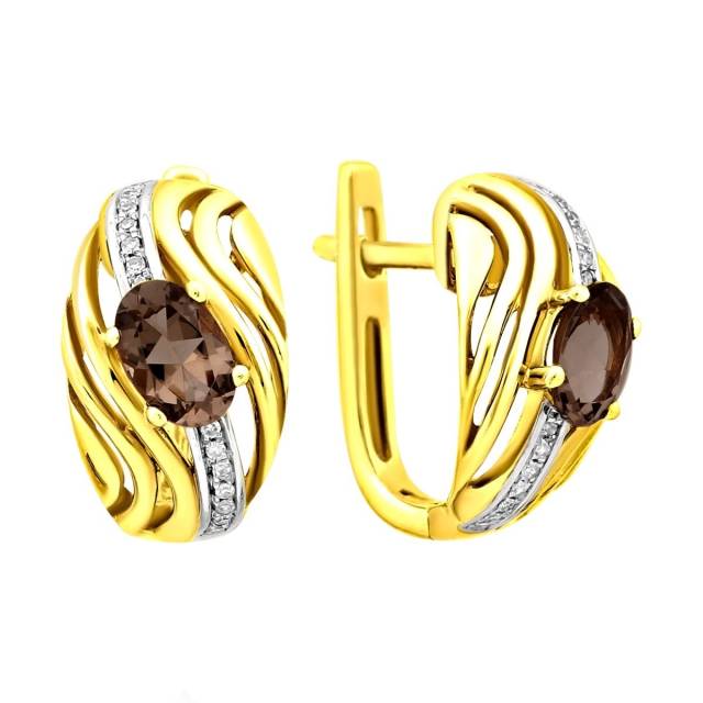 Кольцо из жёлтого золота с бриллиантами и дымчатым кварцем (011472)