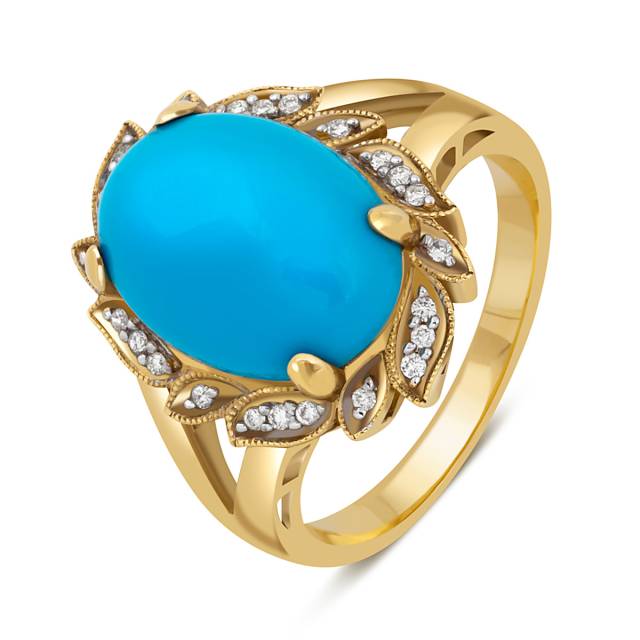 Кольцо из жёлтого золота с бриллиантами и бирюзой (016939)