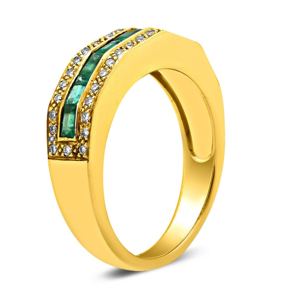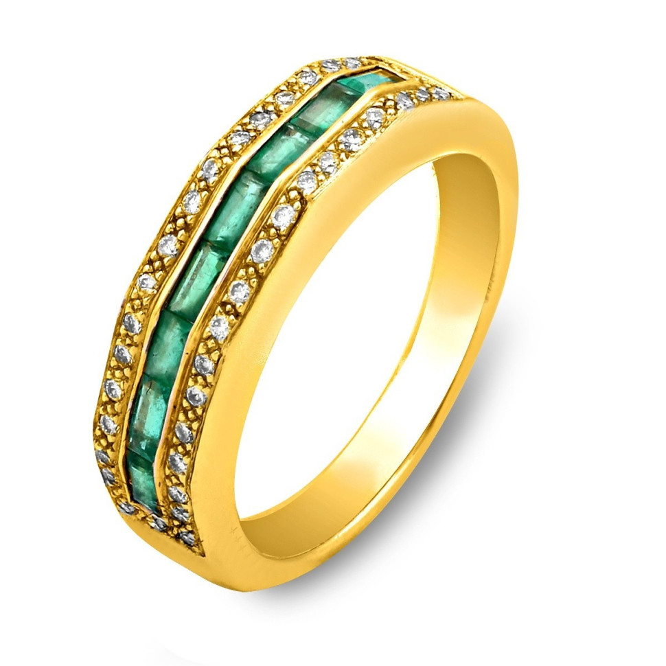 Кольцо из жёлтого золота с бриллиантами и изумрудами (018402)
