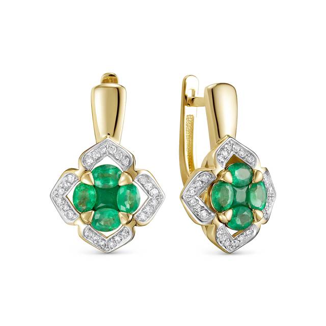 Кольцо из жёлтого золота с бриллиантами и изумрудами (055271)