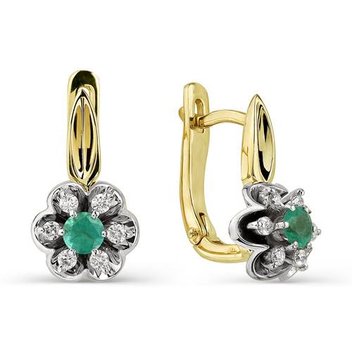 Кольцо из жёлтого золота с бриллиантами и изумрудом (034187)