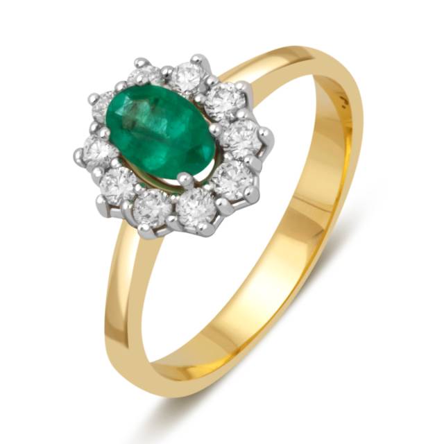 Кольцо из жёлтого золота с бриллиантами и изумрудом (039782)