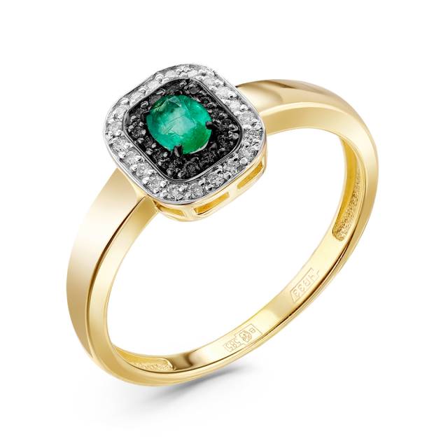 Кольцо из жёлтого золота с бриллиантами и изумрудом (051496)