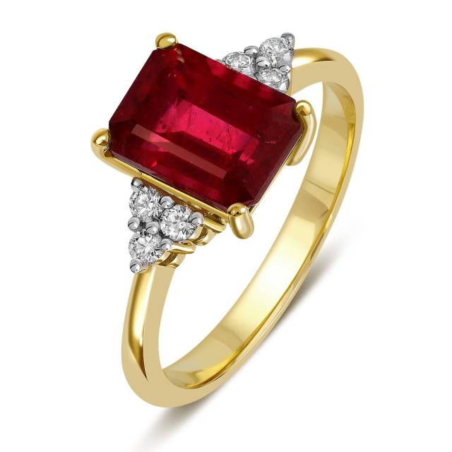 Кольцо из жёлтого золота с бриллиантами и рубином (050548)