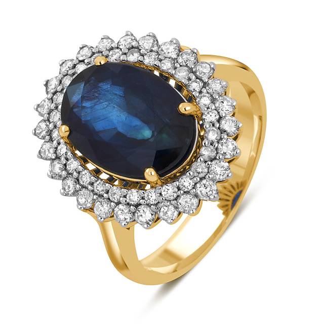 Кольцо из жёлтого золота с бриллиантами и сапфиром (045668)