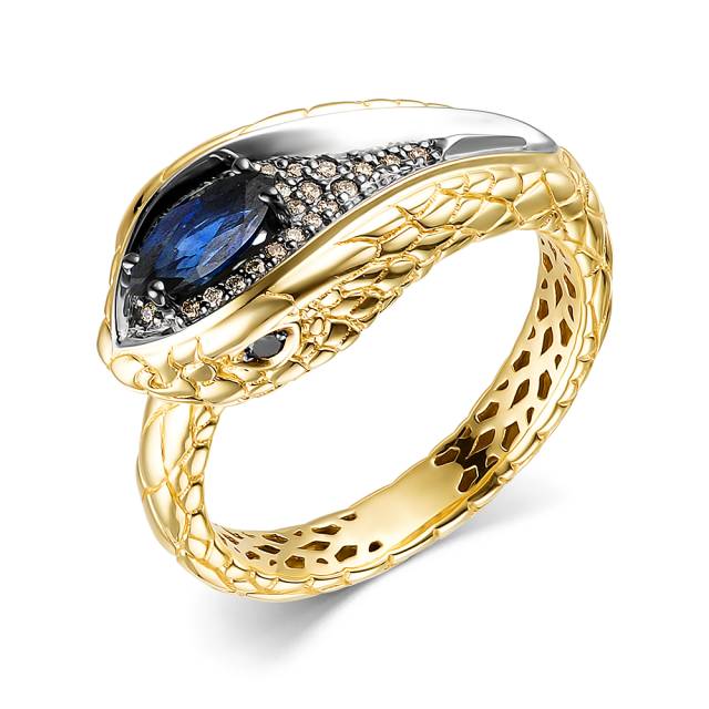Кольцо из жёлтого золота с бриллиантами и сапфиром (055786)