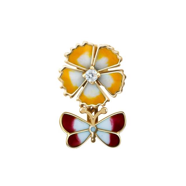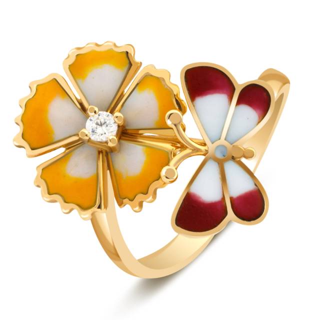 Кольцо из жёлтого золота с цирконами и эмалью (017536)