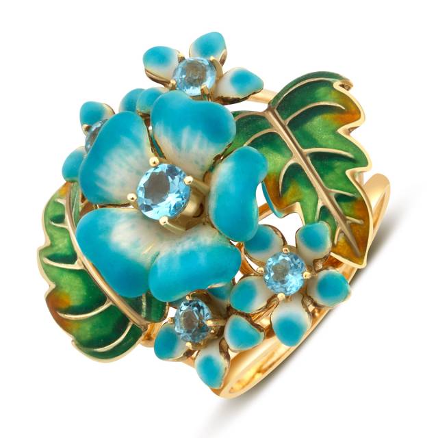 Кольцо из жёлтого золота с цирконами и эмалью (017964)