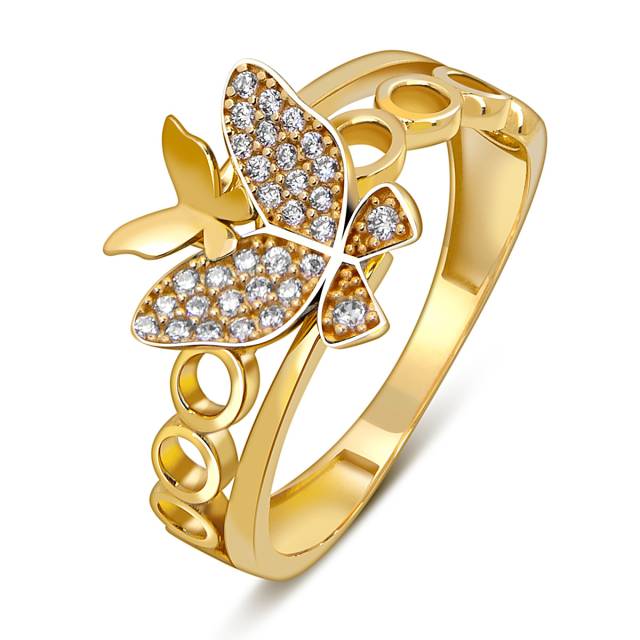 Кольцо из жёлтого золота с фианитами "Бабочка" (057864)