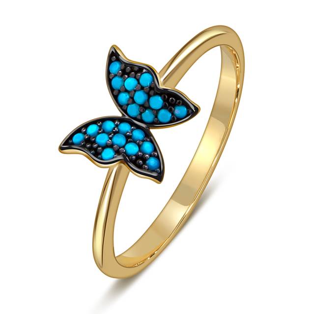 Кольцо из жёлтого золота с фианитами "Бабочка" (057938)
