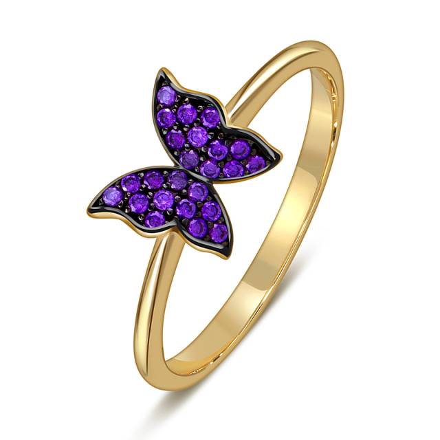 Кольцо из жёлтого золота с фианитами "Бабочка" (057945)