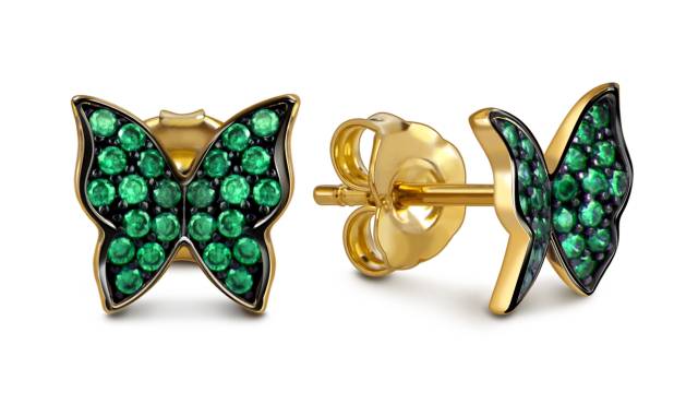 Кольцо из жёлтого золота с фианитами "Бабочка" (057954)