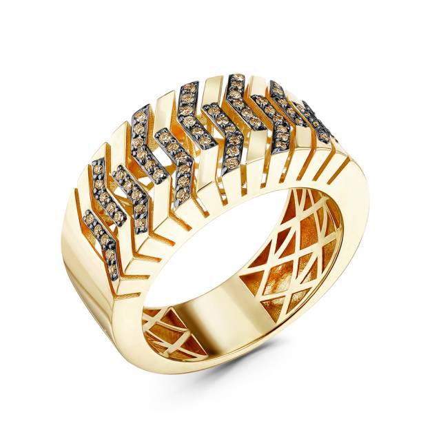 Кольцо из жёлтого золота с коричневыми бриллиантами (051506)
